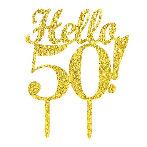 WeBenison Hello 50 Cake Topper - Gold Topper - 50th Birthday Wedding Anniversary Retirement Party Decoration