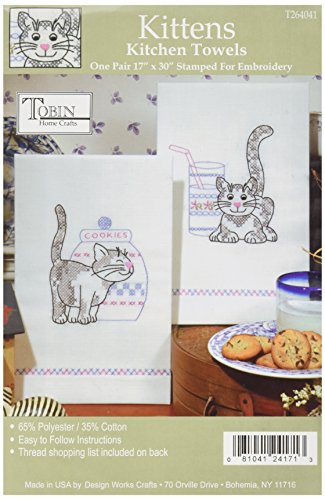 Tobin Stamped Kitchen Towels for Embroidery, Kittens