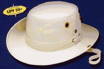 Designed with a medium brim that snaps up on both sides, the Tilley Endurables T3 canvas hat is constructed from fabric that's derived from an incredibly durable sailcloth that is still used in boating today. The pre-shrunk 10-ounce, 100 percent cotton duck is both rain and mildew-resistant. The fabric has also been certified to block 98 percent of harmful UVA/UVB radiation and deliver an ultraviolet factor (UPF) of 50 --the maximum rating given. Other features include a dark underbrim for glare protection and floatability. It also ties on in windy conditions. Each Tilley hat is hand-sewn and all seams are lock-stitched so they won't unravel. It also comes with a secret pocket in the crown to safely and securely store items such as a driver's license, room key, or a $20 bill. Machine wash on delicate cycle separately or hand wash in cool water. Do not use bleach. Guaranteed for life not to wear out. 0 |