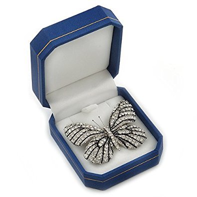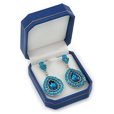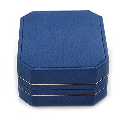 Blue Leatherette Brooch/ Pendant/ Earrings Octagonal Jewellery Box