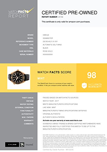 -. Feature : Omega Seamaster 232.63.46.21.01.001 with rose-gold bezel and black dial / Authenticated by WatchFacts. Grade Rating: 98 / Condition: Mint / Comes with original box and manufacturer's papers offered with this watch / Automatic-self-wind movement / Watch year: 2017