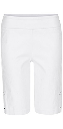 Product Description Meet your favorite island essential! The White Pull On Detailed Bermuda Shorts by Tribal features a pull on design with lattice and gem side hem detail. 76% Rayon, 21% Nylon,3% Spandex. 0