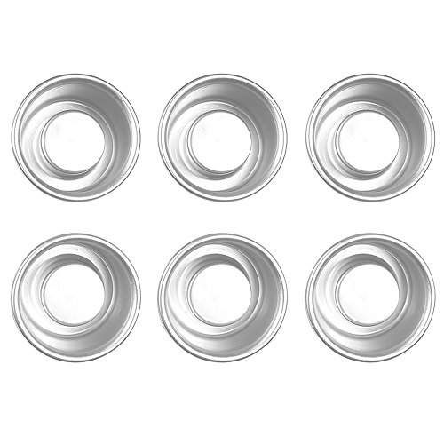 Webake 3 Inch Mini Shortcake Baking Pans 6 Pack Aluminum Hollow Centers Holiday Dessert Single Cake Molds