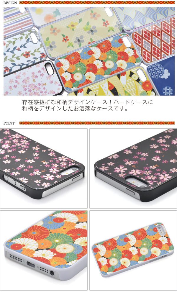| 存在感抜群な和柄デザインケース!ハードケースに和柄をデザインしたお洒落なケースです。 衝撃やキズなどからiPhone5、iPhone5s/iPhone SEを守ります。 もちろん、装着したまま充電やヘッドフォンジャックなどの接続、 各種ボタンの操作も行えるようにデザインされています。 ※iPhone5、iPhone5s/iPhone SEは付属しません。 ※ライセンス商品ではありません。 | ||||||