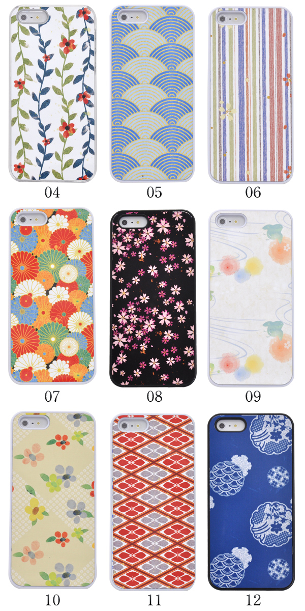 | ケースのベースカラーはブラック、ホワイト、クリアの3色展開! 12種類の和柄にあったお好きな色をお選びください。 | ||||||