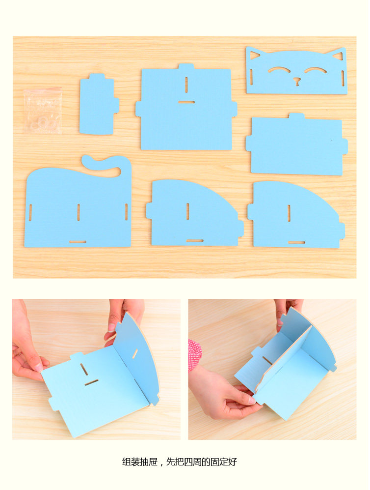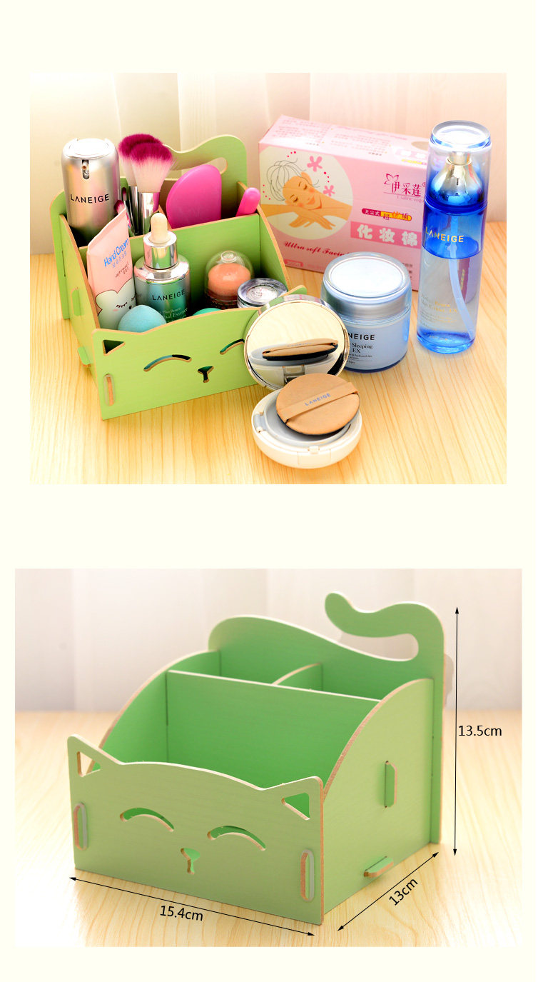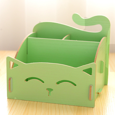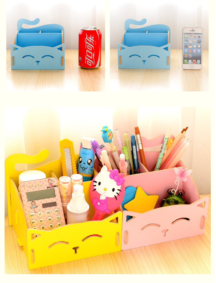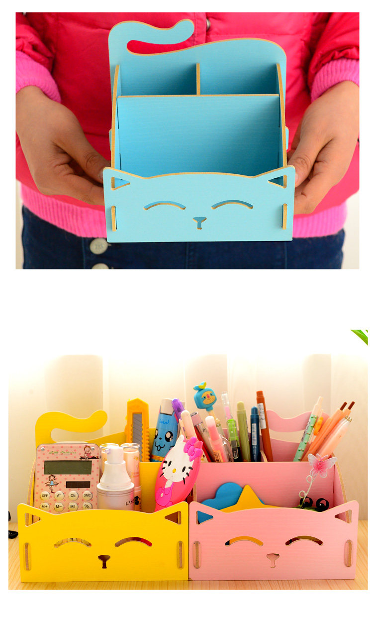 Cute kitty pen storage wooden storage box desktop storage box cosmetics debris