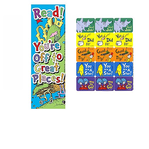 Dr Seuss CAT in the HAT - 36 Bookmarks 120 STICKERS - Classroom TEACHER Reading Rewards - PARTY Favors - Doctor Dentist (You're off to Great Places!)