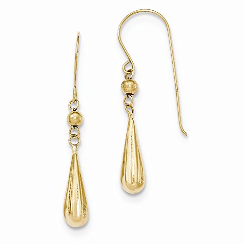 -. Title : 14K Yellow Gold Grooved Puffed Teardrop Shepard Hook Earrings