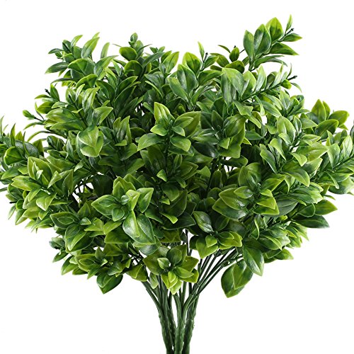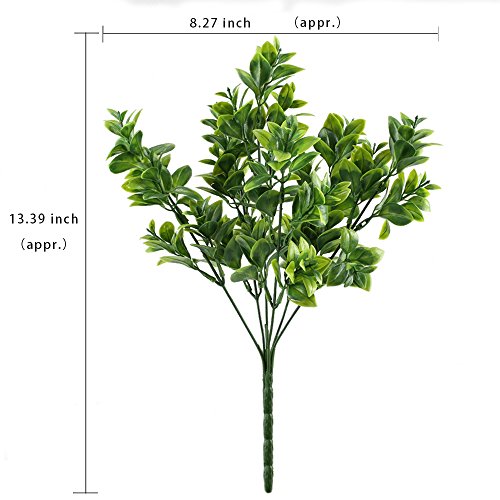 - Arrive include 4 bunches of fake boxwood leaves bushes, each stem toatl length approx 13.39 inch, unfold wide approx 8.27 inch