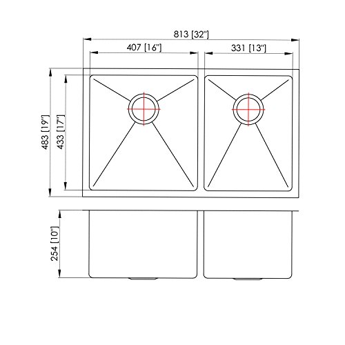3.The sink size is 32’inch X 19”inch X 10”inch and for the rounded angle .