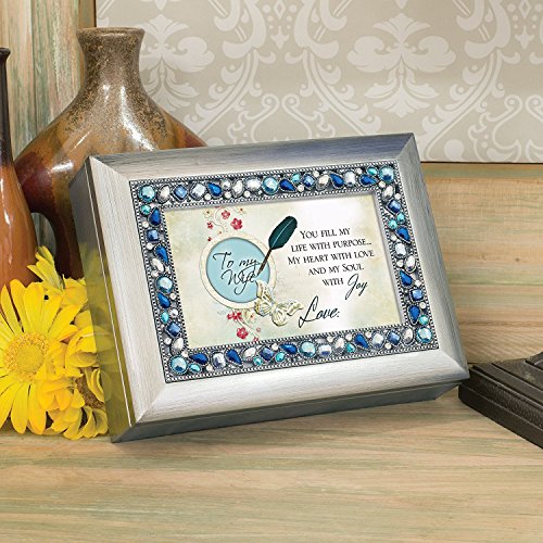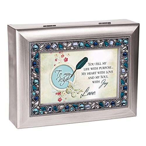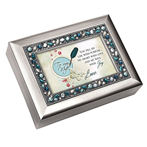 To My Wife Brushed Silver Finish Jeweled Lid Jewelry Music Box Plays That's What Friends Are For