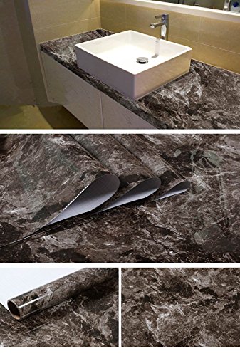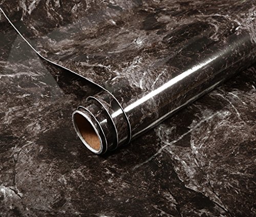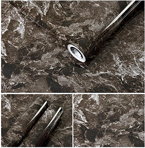 DHHOUSE - Black Brown Granite Look Marble Effect Contact Paper, Decorative Self-Adhesive Film (16" x 6.56ft)