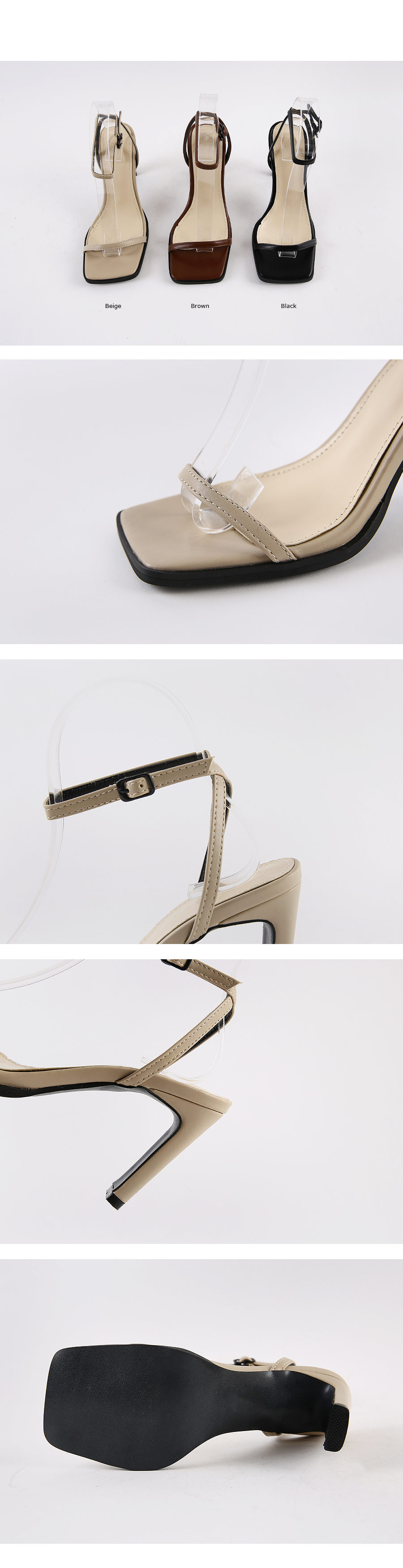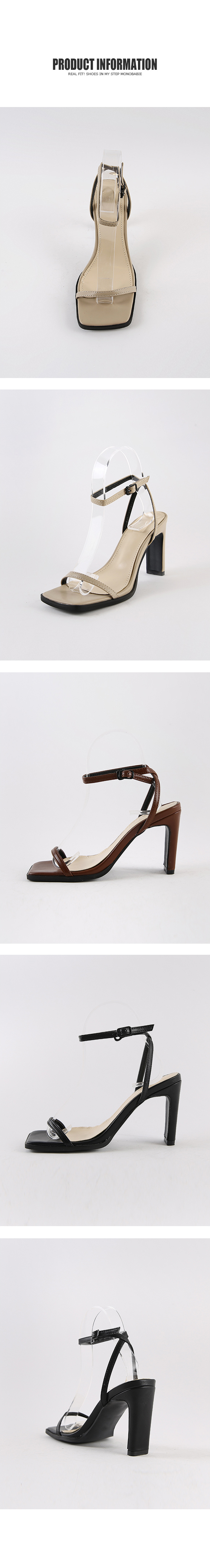 인조소가죽 소재의 하이힐 샌들입니다.