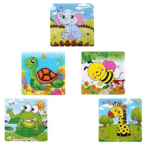 -. Feature : This brilliant jigsaw puzzle let your baby know appearance and structure of the kinds of animal. Exercise children memory and ability to assemble;Improve the transformation of thinking ability and the children hands and brain, combining ability.You can understand some of the relationship with the whole, and learn to use the known clues to understand the unknown world, big eyes, hands, brain coordination education effect. / Includes 5 colorful Zoo Animal puzzles made of Plywood: Giraffe, Elephant, Turtles, Frog, & Yellow Bees. Each puzzle contains 16 pieces. These puzzles will be perfect learning toys for children. The bright colors will make learning much more exciting and fun whilst they develop their sensitivity to color and shapes.Strengthen the ability of visual identification and children 's understanding of the integrity of things. / Size: 15*15*2.5cm/5.9*5.9*0.9inch. These are very nice puzzles. They're made of wood, so they seem very durable. They're also cute, and fairly easy for toddler to use.These puzzles are well made and sturdy. That is true of the wooden ones with large or small pieces. Perfect jigsaw puzzle toy for toddlers kids children up 2 years old. / The pieces all have symbols P.R.Inted on the backs helps children know where the pieces go. Jigsaw puzzles can help to ignite imagination and a sense of wonder in all children so they can discover themselves, their passions, their purpose and to see new possibilities.At the same time after repeated take, turn in different directions, patchwork, in order to block the right place, you can promote the flexible development of children's muscles and children hands-on habits. / Bought these puzzles for old people that has dementia can help to develop their dexterity and mental capabilities. The puzzles are an good quality with pieces that would not be easy to destroy. These puzzles also would be great for the developing minds of young children.