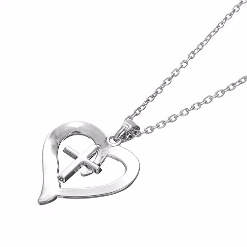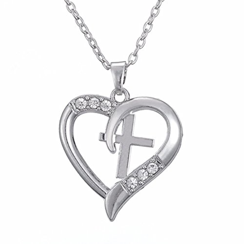 -. Feature : High polished silvertone cross and heart pendant / Crystal accents, 17 inches chain with lobster clasp / Pendant measures approximately 1.13 inch wide and 1.13 inch tall / Packaged in a lovely gift box / Ideal for Valentine, anniversary, birthday, graduation, Christmas, and casual wear