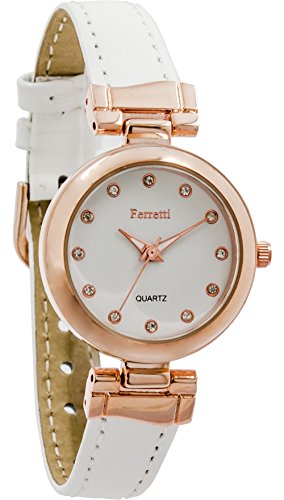 Ferretti Women's | Petite Gold Classic White Leather Strap Watch | FT12703