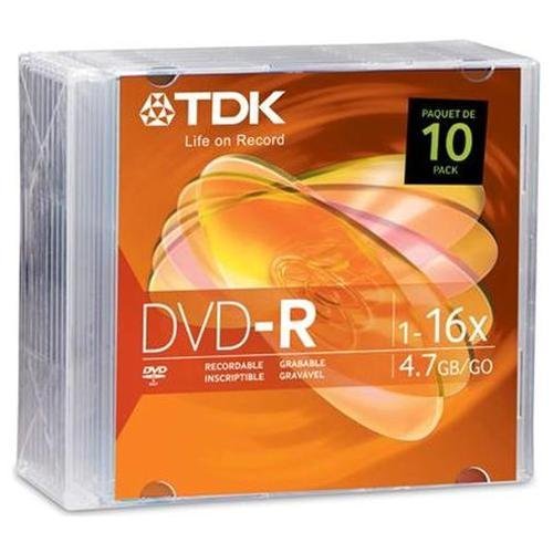 TDK Systems 10PK DVD-R 4.7GB 16X-BRANDED W/ SLIM JC ( DVD-R47FM10 ) (Discontinued by Manufacturer)