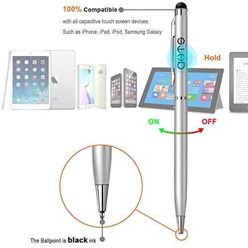 2-in-1 Design -- one end contains the stylus that works with capacitive touch screens, like Kindle, iPhones, iPads, Androids, and most other modern tablets and phones; Twist pen body to extend the ballpoint pen for notes or whatever else you want to write.
