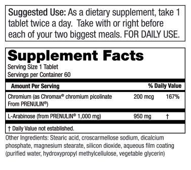 Prenulin combines the powerful glucose absorption properties of a specially-made, US-manufactured form of L-arabinose derived from corn, with the insulin support capability of Chromax, the most clinically studied form of chromium on the planet. Studies show that 1 gram of Prenulin reduces the glucose and insulin impact of 70 grams of sugar by almost 30%.