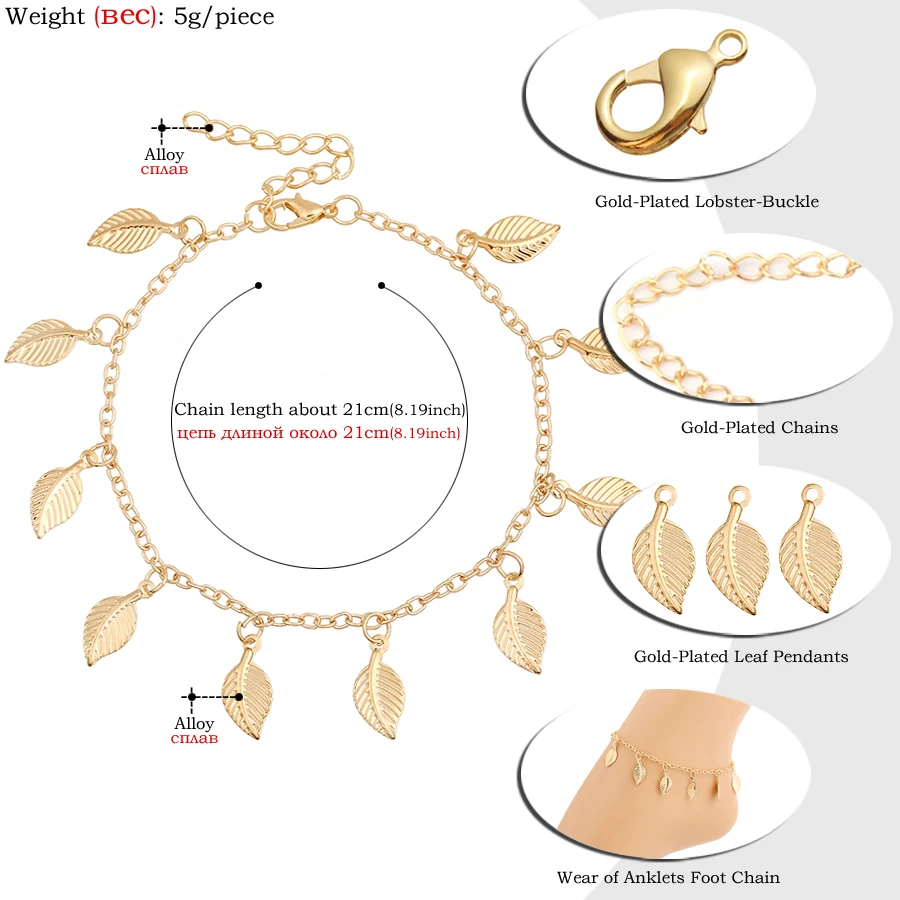 Ankle Bracelets Size:Anklets Chain length about 21cm, 5g/piece