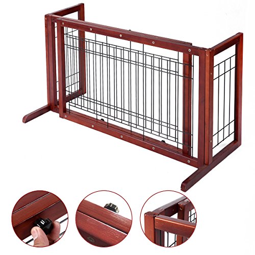 -. Title : Indoor Pet Fence Gate Free Standing Adjustable Dog Gate Solid Wood Construction