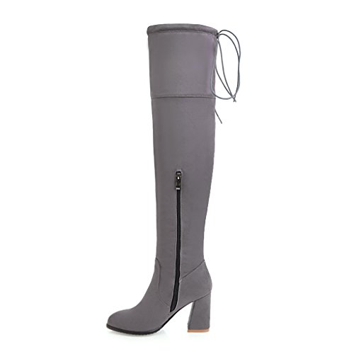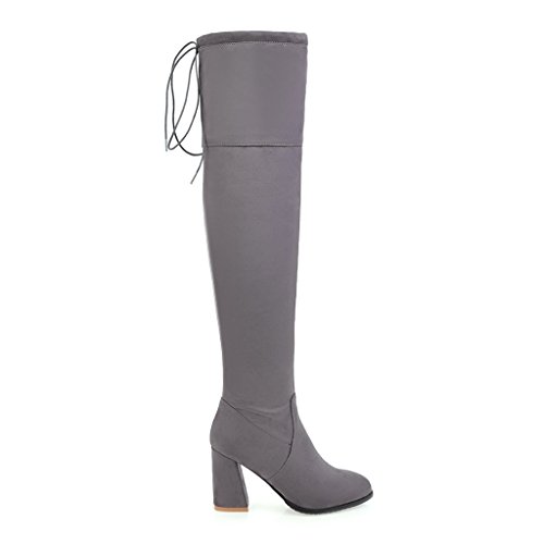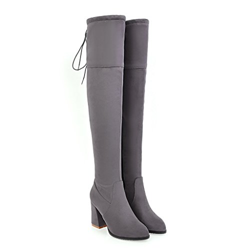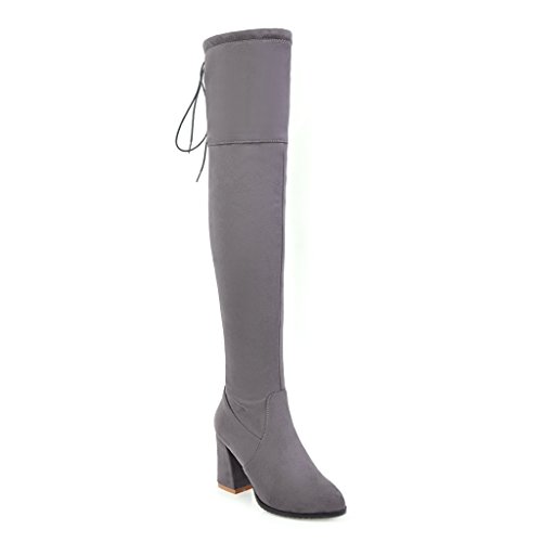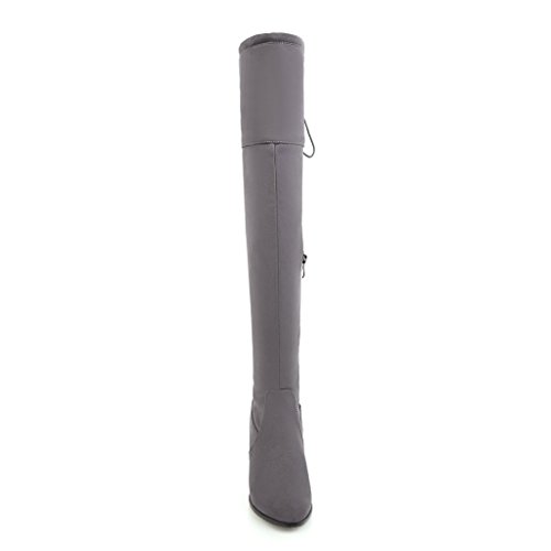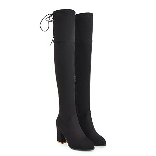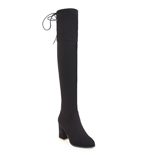 (BalaMasa)/Women's/Boots/DIRECT FROM USA/BalaMasa Womens Kitten-Heels Above-The-Knee Solid Pointed-Toe Suede Boots ABL09650