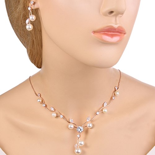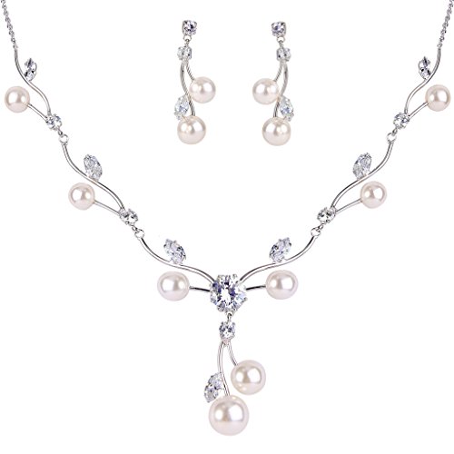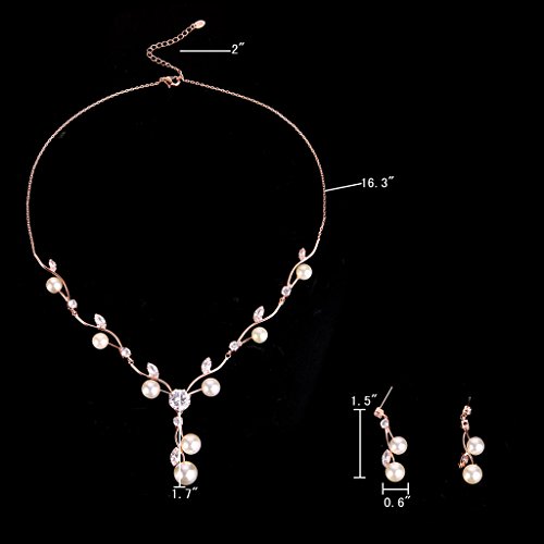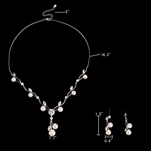 -. Feature : Made of crafted environmental friendly Cubic Zirconia and Simulated Pearls, this jewelry shines with grace and beauty. And the metal surface is of high polished finish. / CZ Color: Clear; Simulated Pearl Color: Ivory Color; Necklace Length: 16.3in-18.3in, Pendant Size: 1.7in by 6.8in, Earring Size: 0.6in by 1.5in; Total Weight: 14g / A perfect accessory to your outfit or as an approP.R.Iate gift, e.g.for your Daughter, Lover, Girlfriend, Fiancee, Wife, Mother, Couple, Valentine or just a Friend,etc; Suitable for Valentine's Day, holiday, ball, party, anniversary, prom, graduation, birthday or any special occasions; Click on our Storefront for more stylish and newest jewelries. / The item in picture with ornament is same as the real object without PS. / Free Exquisite Gift Wrap: Gift Box + Gift Velvet Bag; 30-day Money Back Guarantee.