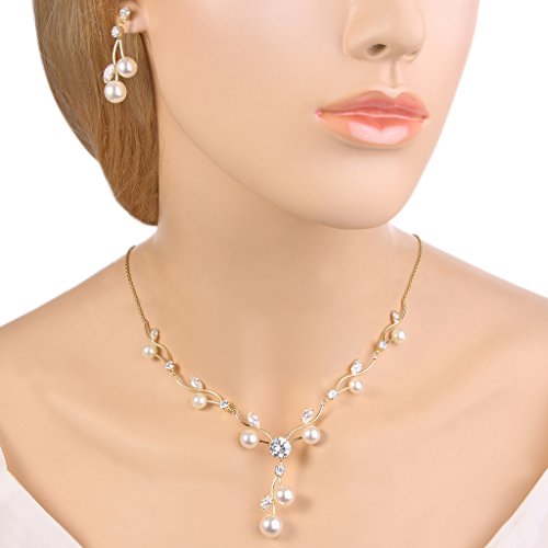 -. Title : EleQueen Women's Cubic Zirconia Simulated Pearl Flower Filigree Bridal Necklace Earrings Jewelry Set Ivory Color