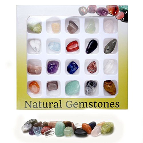 QGEM 20x Mini Gemstone Chakra Stones Healing Balancing Kit for Collectors, Mini Stones Crystal & Reiki Healers and Yoga Practioner