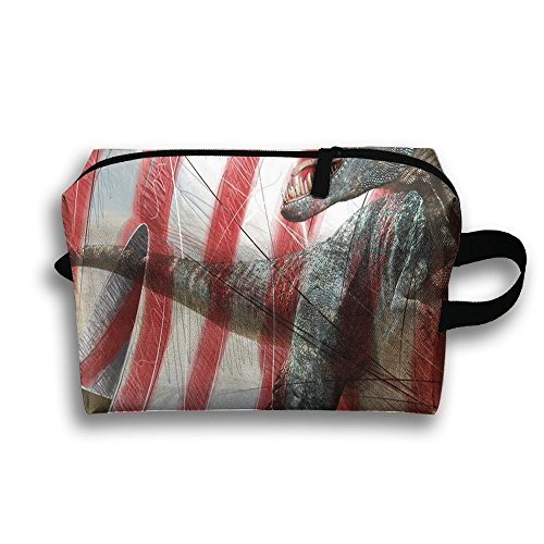 (LzVong)/Accessories/Wallets, Money Key Organizers/DIRECT FROM USA/LzVong Shout Dinosaur Stand In Us Flag Portable Makeup Pouch Travel Hangbag Full Print
