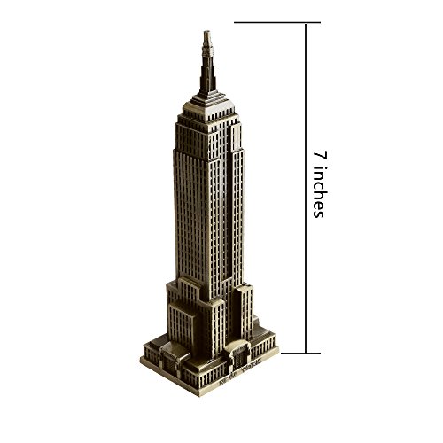 Kloud City Vintage Bronze 7 Inch New York Statue of Empire State Building Model Statue Collectible Figurine Home Desktop Décor, Replica, Collectible Artificial World Famous Buildings Sculpture