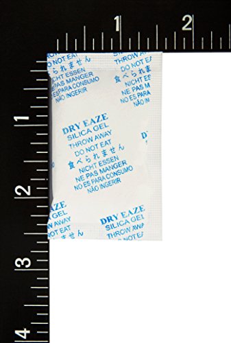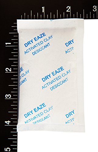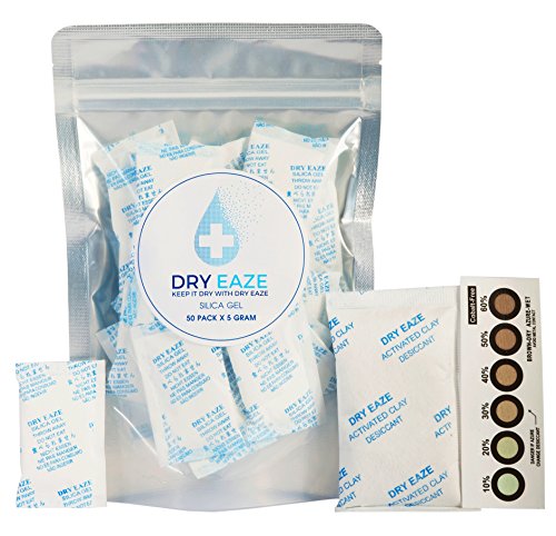 Dry Eaze Silica Gel Packets Desiccant BONUS 50 Gram Activated Clay and 6 Dot Humidity Indicator Card