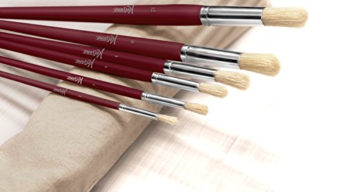 - 6 Flat and 6 Round Natural Bristle Brushes - Sizes 2, 4, 8, 10, 12