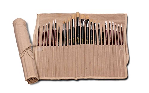 24 piece set consisting of Natural Round and Flat and Synthetic Round and Flat of varied sizes, allow the artist to perform an array of techniques and styles of painting