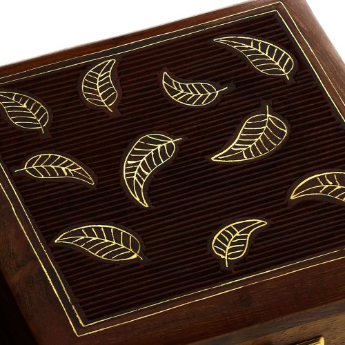 -. Binding : Kitchen -. Brand : ShalinIndia -. Color : Brown -. Department : womens -. EAN : 5055384626365 -. Feature : GENUINE Jewelry box shows off the beauty of natural Indian sheesham wood / DISPLAY ANYWHERE Compact jewelry box measures 4" x 4" x 2.25" outside and 3.25" x 3.25" x 1" inside / STRIKING DESIGN Gorgeous brass floral inlay makes this a lovely jewelry box for girls and women / UNPARALLELED QUALITY Indian handcraftsmanship makes this a cheap jewelry box of impressive quality / BEAUTIFUL GIFT IDEA Our jewelry boxes make great gifts for women and girls for all occasions -. IsAutographed : 0 -. Label : ShalinCraft -. Manufacturer : ShalinCraft -. Model : MPN-WC-500 -. MPN : MMN-WC-500 -. PackageQuantity : 1 -. PartNumber : MMN-WC-500 -. ProductGroup : Home -. ProductTypeName : HOME_FURNITURE_AND_DECOR -. Publisher : ShalinCraft -. Size : 4 x 4 x 2.25 Inches -. Studio : ShalinCraft -. Title : Wooden Jewelry Box for Women Leaf Decor Inlay 4x4x2.25 Inches