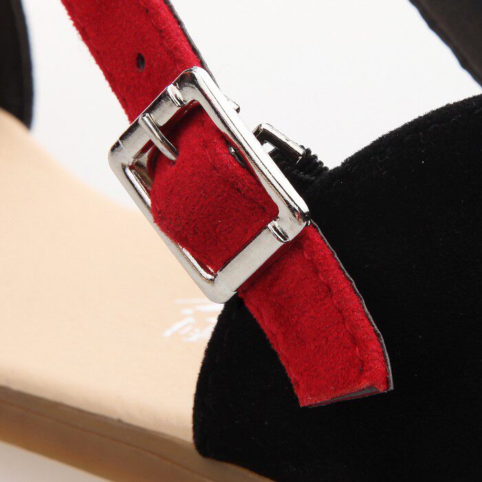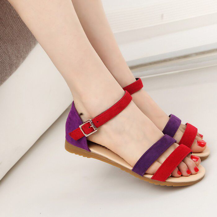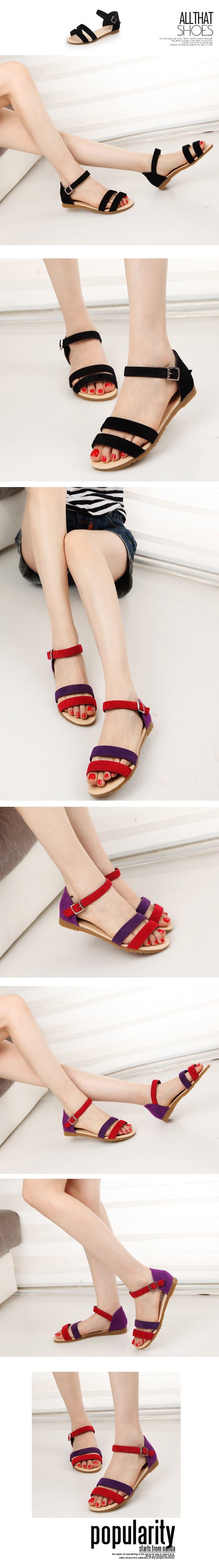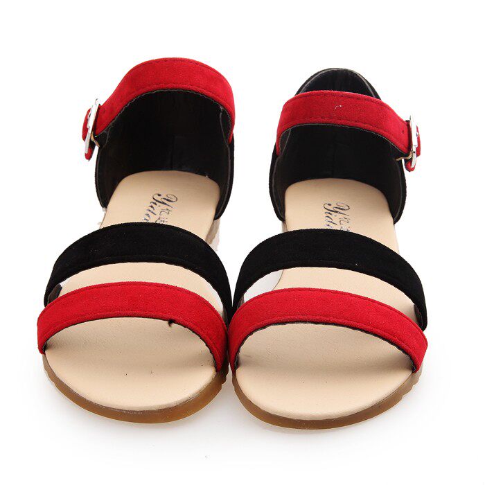 凉鞋 女 平底学生鞋拼色罗马鞋平跟搭扣鞋子夏季露趾女鞋韩版