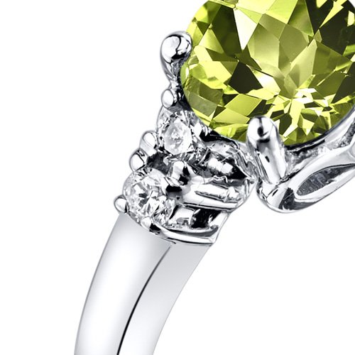 -. Feature : Natural Peridot, Rich Leaf Green Hue with Brilliant Sparkle / 4 pieces Genuine Diamonds / 14 Karat White Gold / Made in USA / Exclusive Styling, Gift Box, 30 Day Return Policy