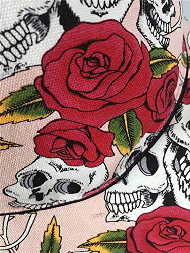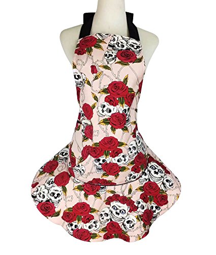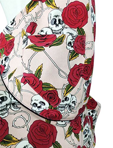 TLY Womens Novelty Halter Tie Floral Skull Skirt Canvas Apron with Pocket, Pink
