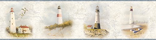 -. Title : Chesapeake HTM48422B Seaman Blue Lighthouse Coast Portrait Wallpaper Border