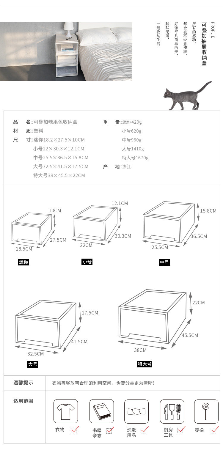 可叠加抽屉式收纳盒衣橱衣柜整理收纳箱宿舍神器鞋子杂物储物盒