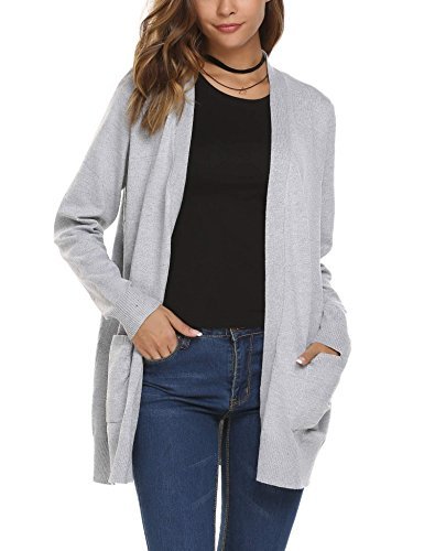 -. Title : Unibelle Women's Casual Open Front Knit Cardigan Sweater with Pockets (M Light Gray) [並行輸入品]