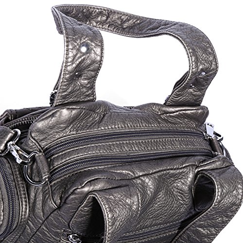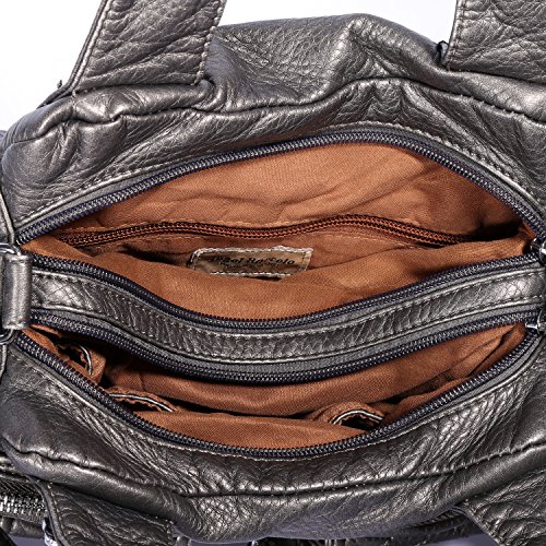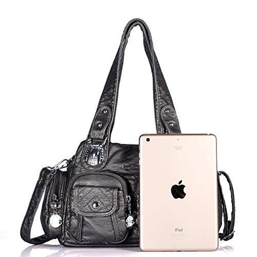 5.Large enough for daily use, fits Ipad, wallet, mobile phone, books and more.Fabric-lined spacious interior with two roomy main compartments. One with interior zippered pocket and the other with cell phone and sunglasses pockets. Comfortably holds an iPad, iPad Mini or a tablet 10"x8"x1" and under. Perfect for Using in Office, School, Dating,Travel or any Other Daily Occasions.