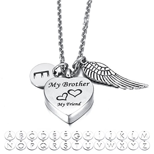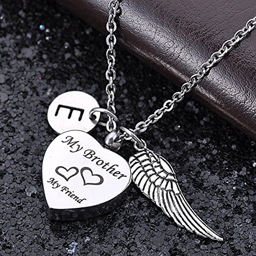 Cremation Urn Jewelry My Brother My Friend Heart Pendant Necklace Memorial Ash Keepsake with Angel Wing 26 Letter Charm