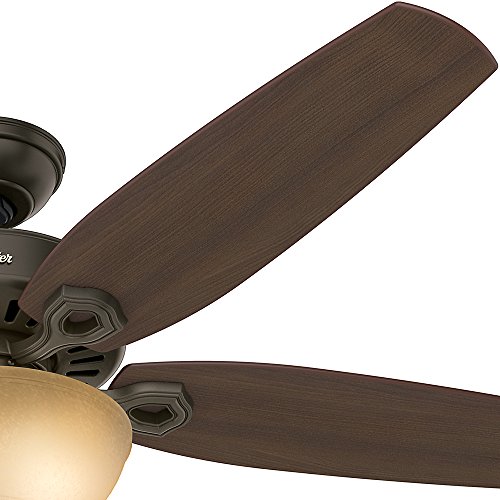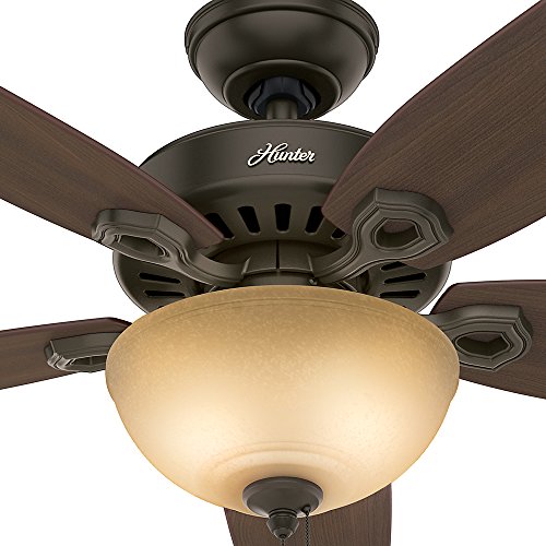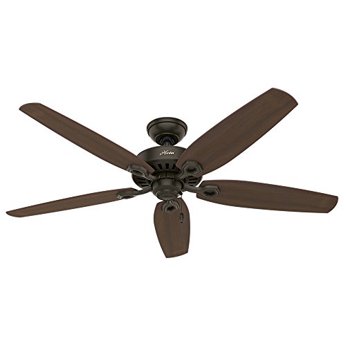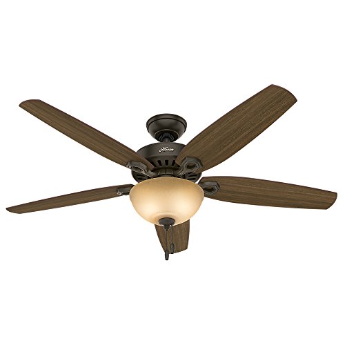 The builder fan is a mainstay in the hunter product line, and now great rooms can showcase one of our best-selling fans! the casual, traditional style will compliment your room without overpowering it. With a 56-inch blade span, a variety of finish options, and the ability to install with or without the light kit, this bowl-light fan is flexible enough to fit almost any large space you choose.