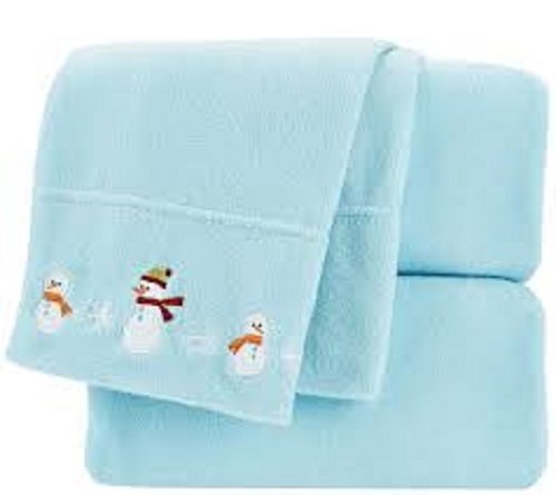 Berkshire Blanket Embroidered Polar fleece Sheet Set (snowmen) Babyblue (QUEEN)