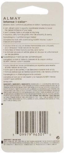 -. Binding : Misc. -. Feature : Fun and easy to use, Almay's Intense i-Color Shadow Stick provides all day wear with no creasing! The luxurious and silky formula glides along the eyelid, giving you smooth and even colour! -. PackageQuantity : 1 -. ProductGroup : Beauty -. ProductTypeName : BEAUTY -. Title : Almay Intense i-Color Shadow Stick 2g