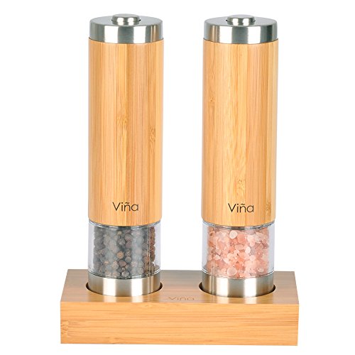 Vina salt and pepper grinder set uses 100% ceramic grinders, so they will never wear out. Looks great on your countertop or dining room table! Measures: 8.4" tall by 2" wide and maximum capacity for the salt: 70g / 2.5 oz; Whole black pepper: 35g/1.23 oz