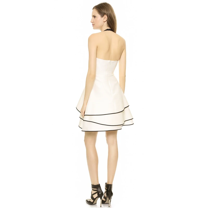 HDY Haoduoyi Solid White Fashion Mini Dress Women Sleeveless V-neck Female A-line Dress Slim Backless Ruffle Casual Dress | |||||||||||||||||||||||||||||||||||||||