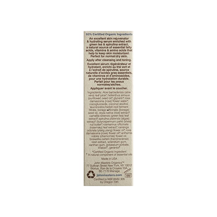 원본상품명: ジョンマスタ?オ?ガニック グリ?ンティ?&ロ?ズハイドレ?ティングフェイスセラム 30ml