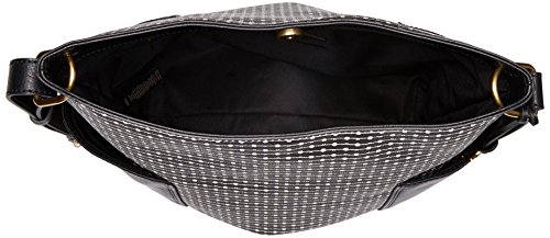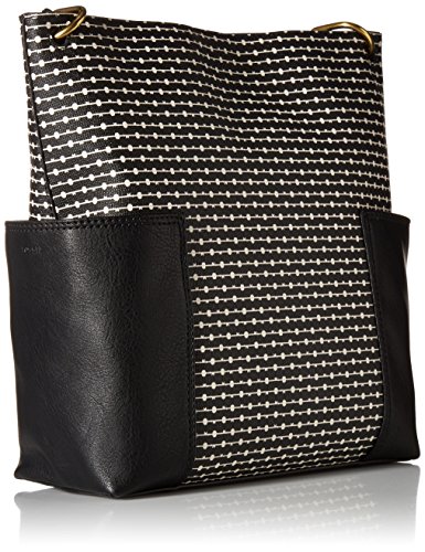 This pvc crossbody boasts two exterior slip pockets, two interior slide pockets and an adjustable strap.